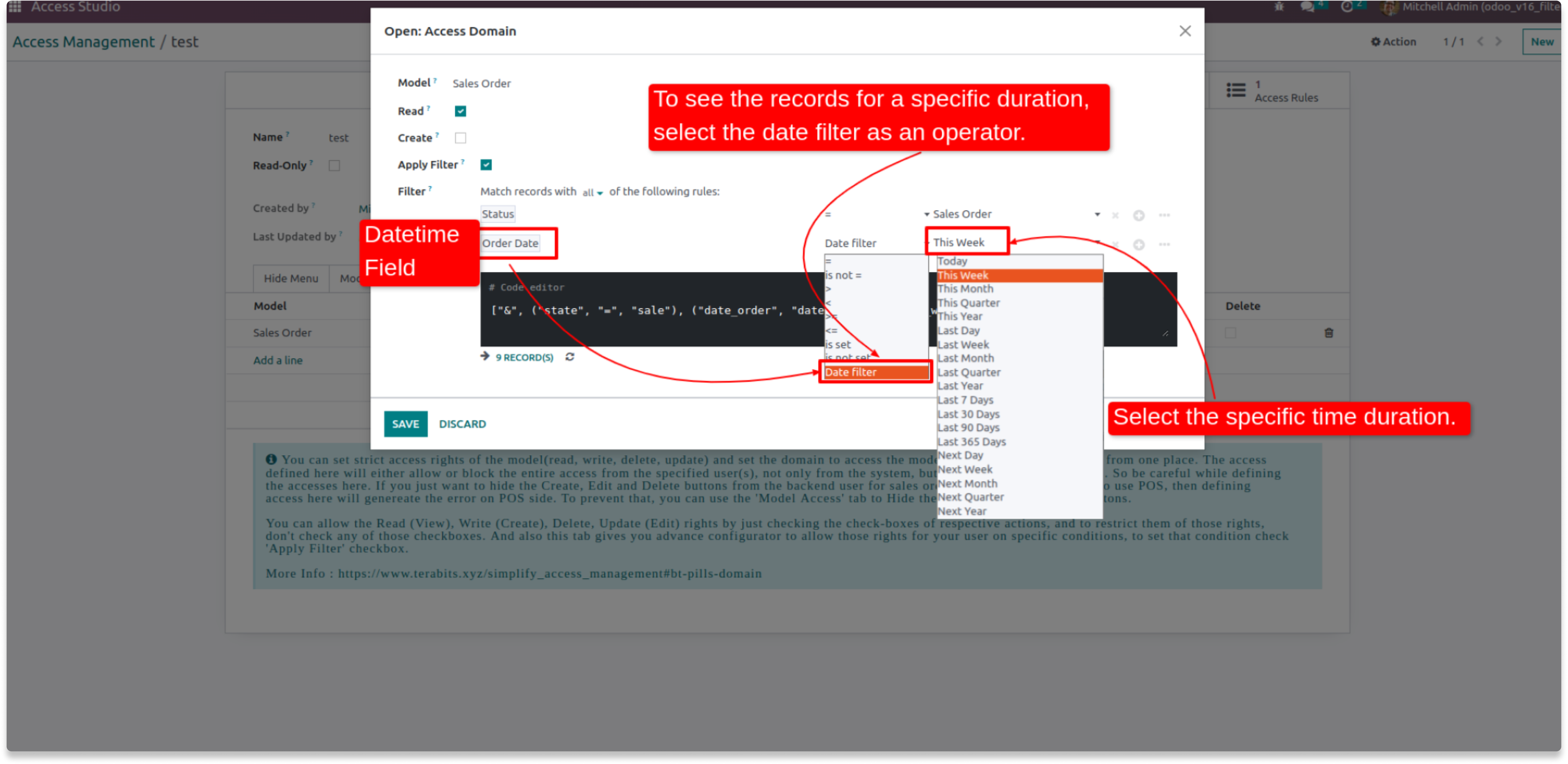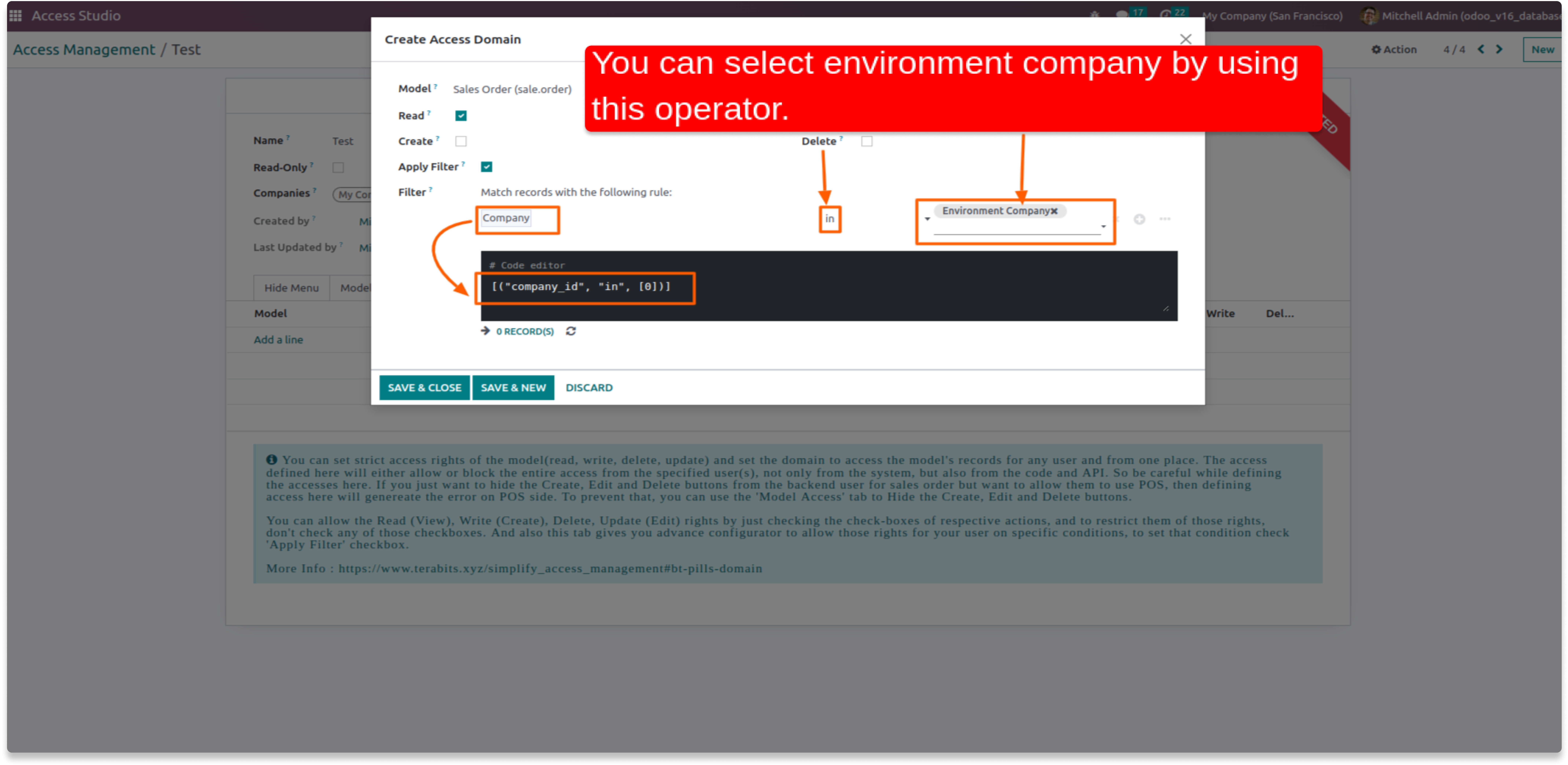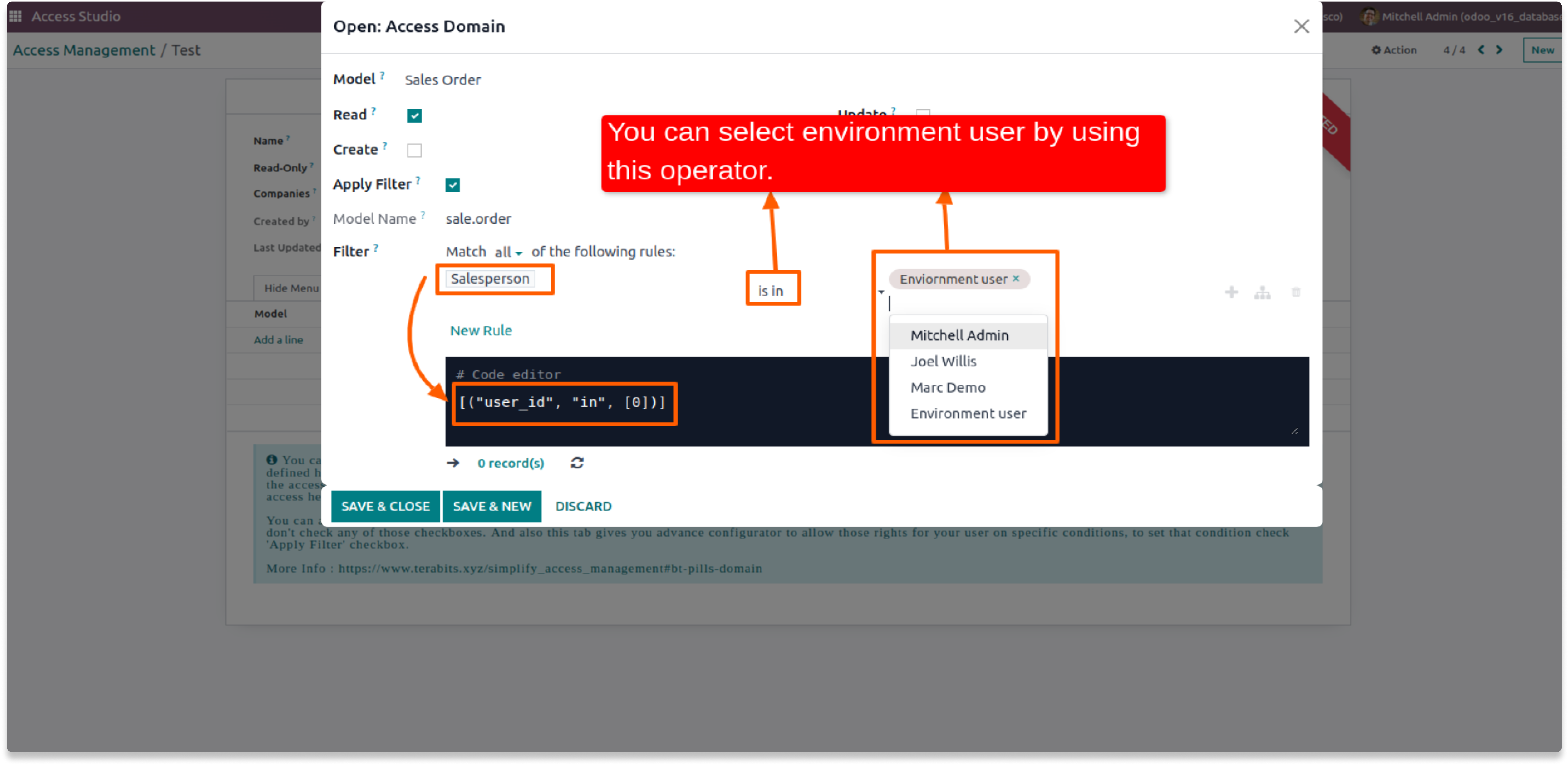 This module provides domains with an additional feature to select any models record while using any relational field and create a domain after selecting it. for that, we provide two additional operators ('in' and 'not in') that allow the user to select a record of any model. after select any record, its id automatic adds in domain.