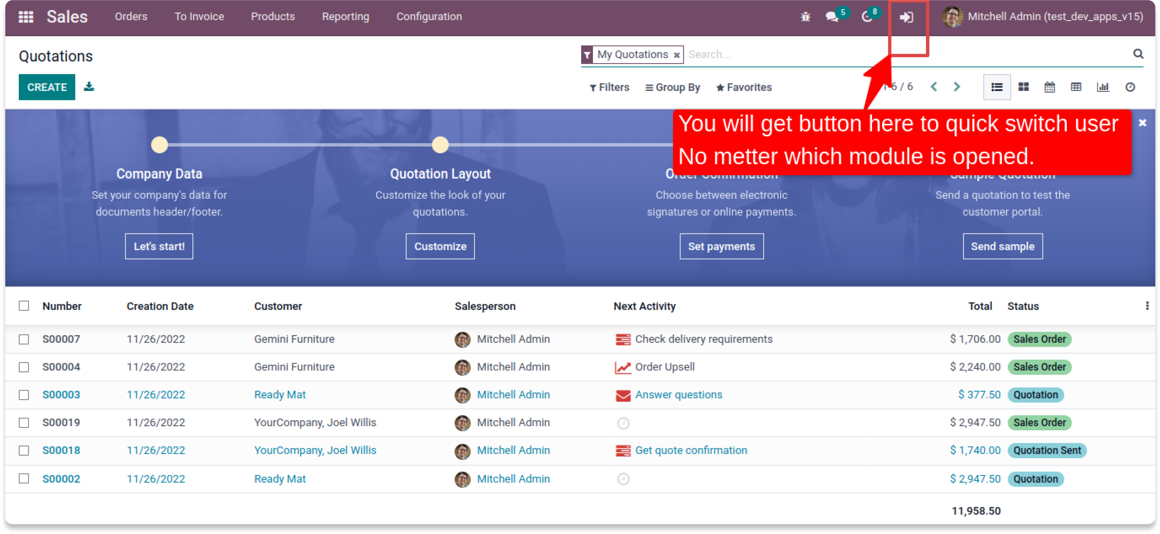 This module allows administrators to switch between multiple users by just siiingle click and without knowing Credentials.