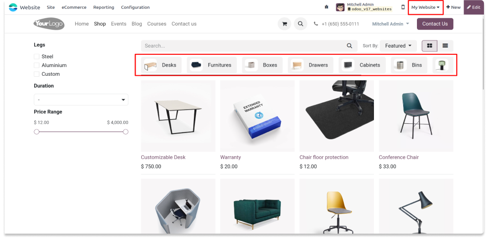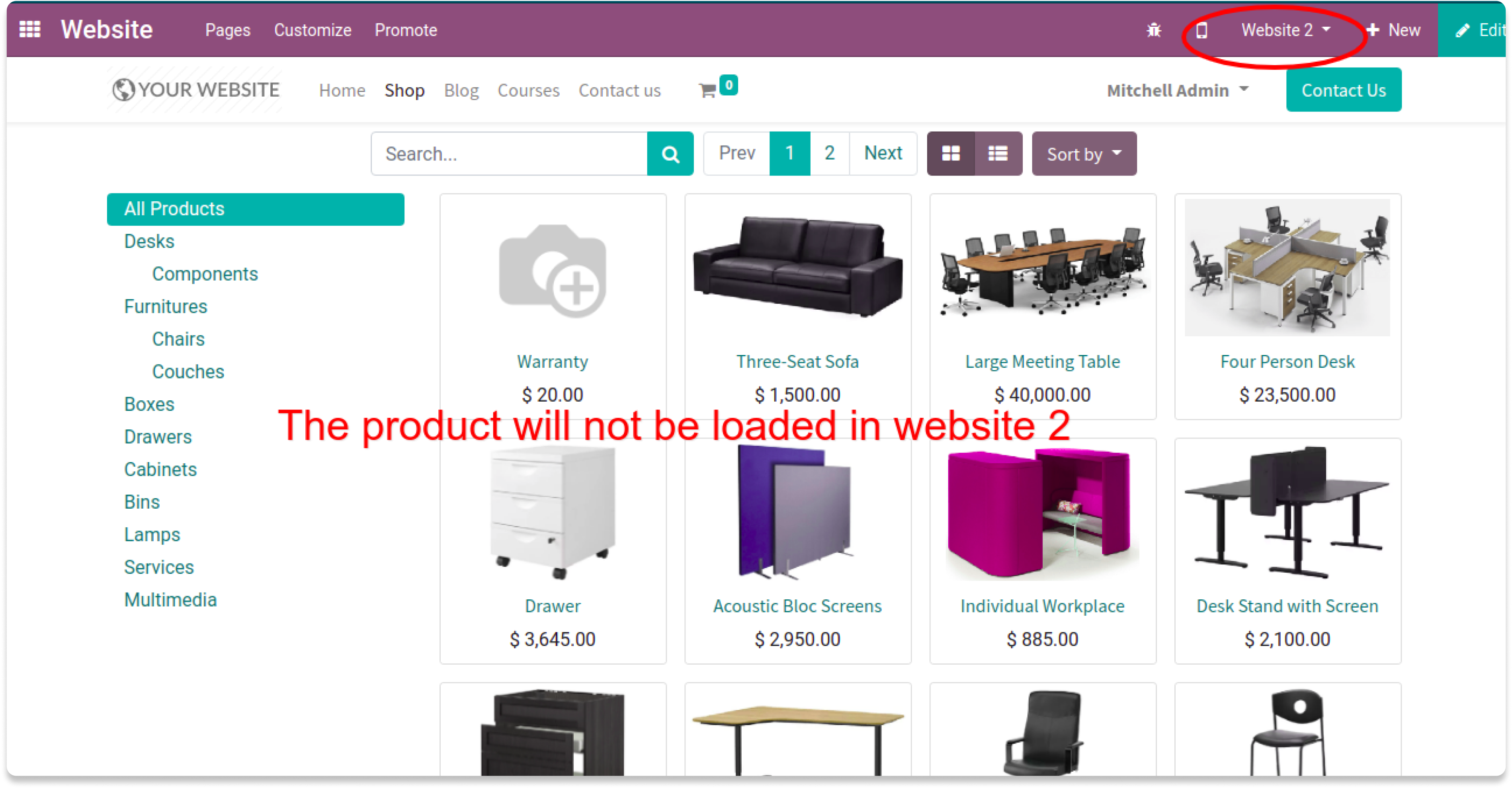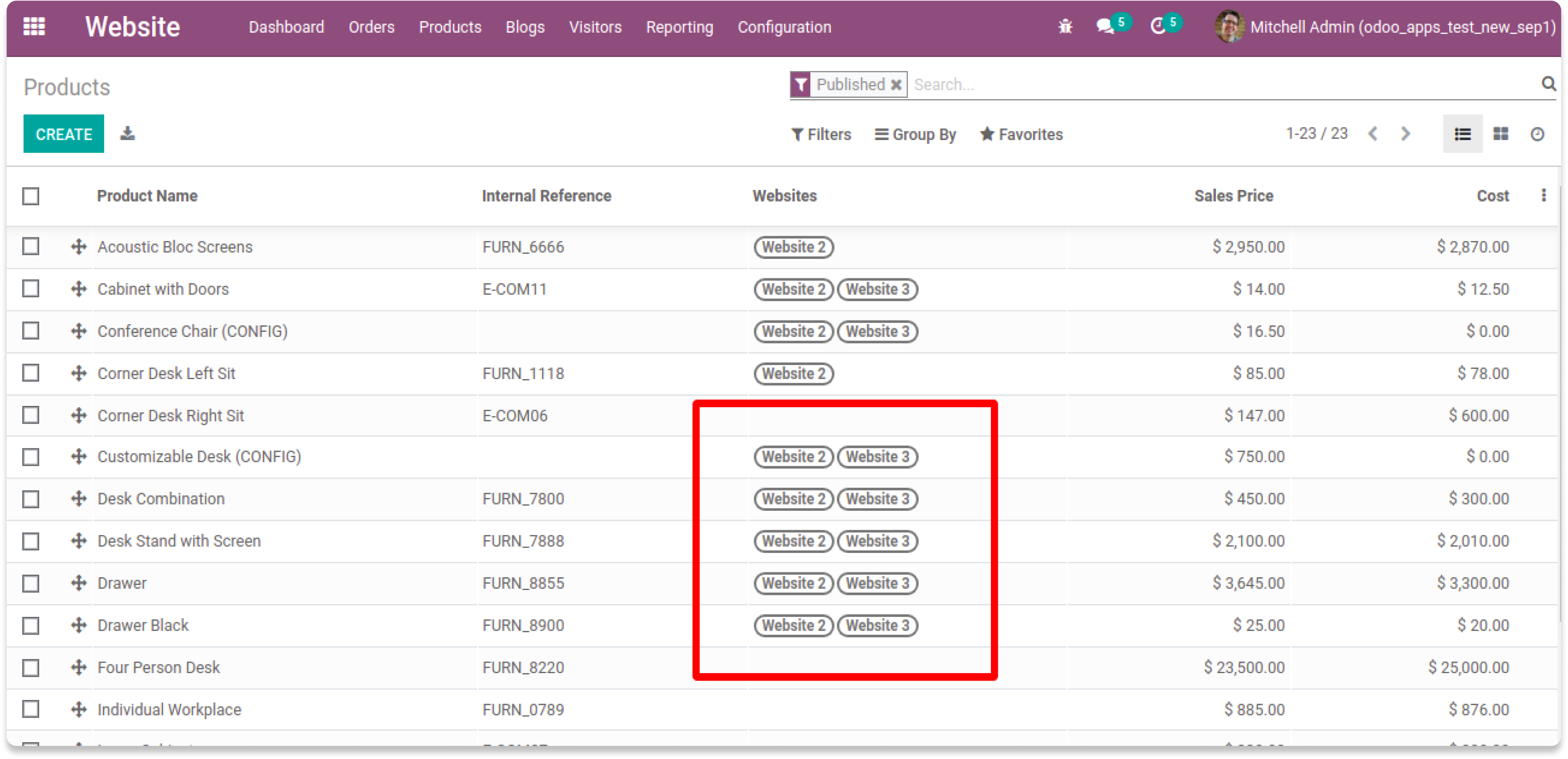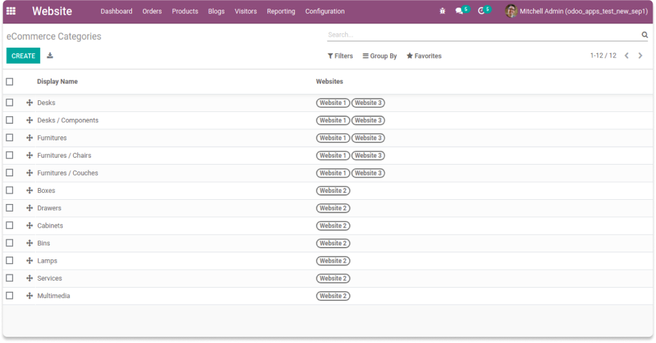 Odoo's base multi website feature only allows you to select either one website per product or none, but it doesn't allow you to select 2 or more websites per product if required. With this app you can add a product & eCommerce Category to several websites instead of just one or none at the time.