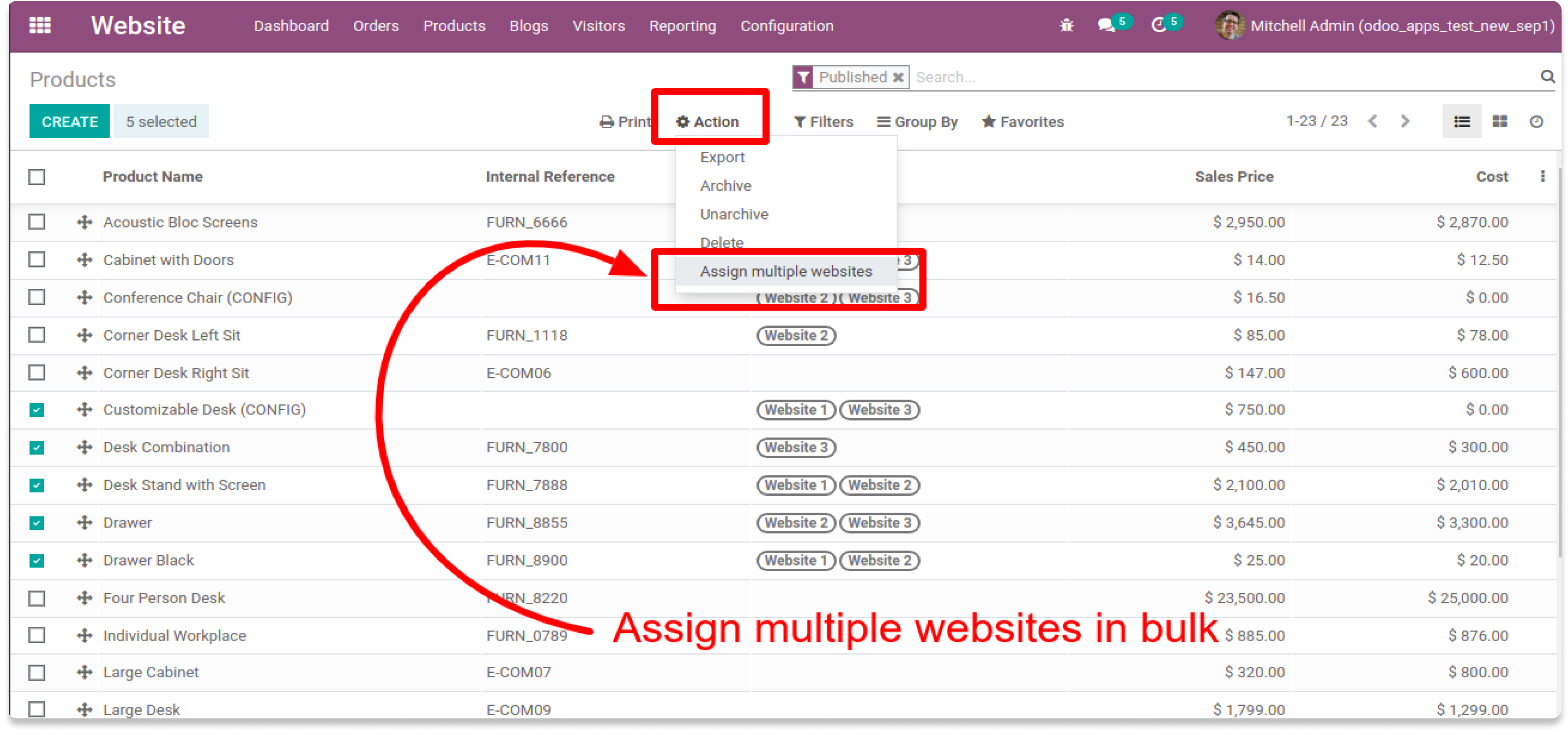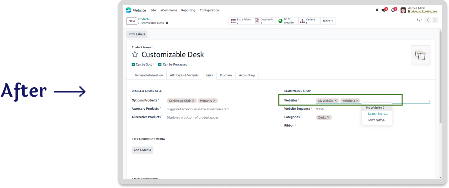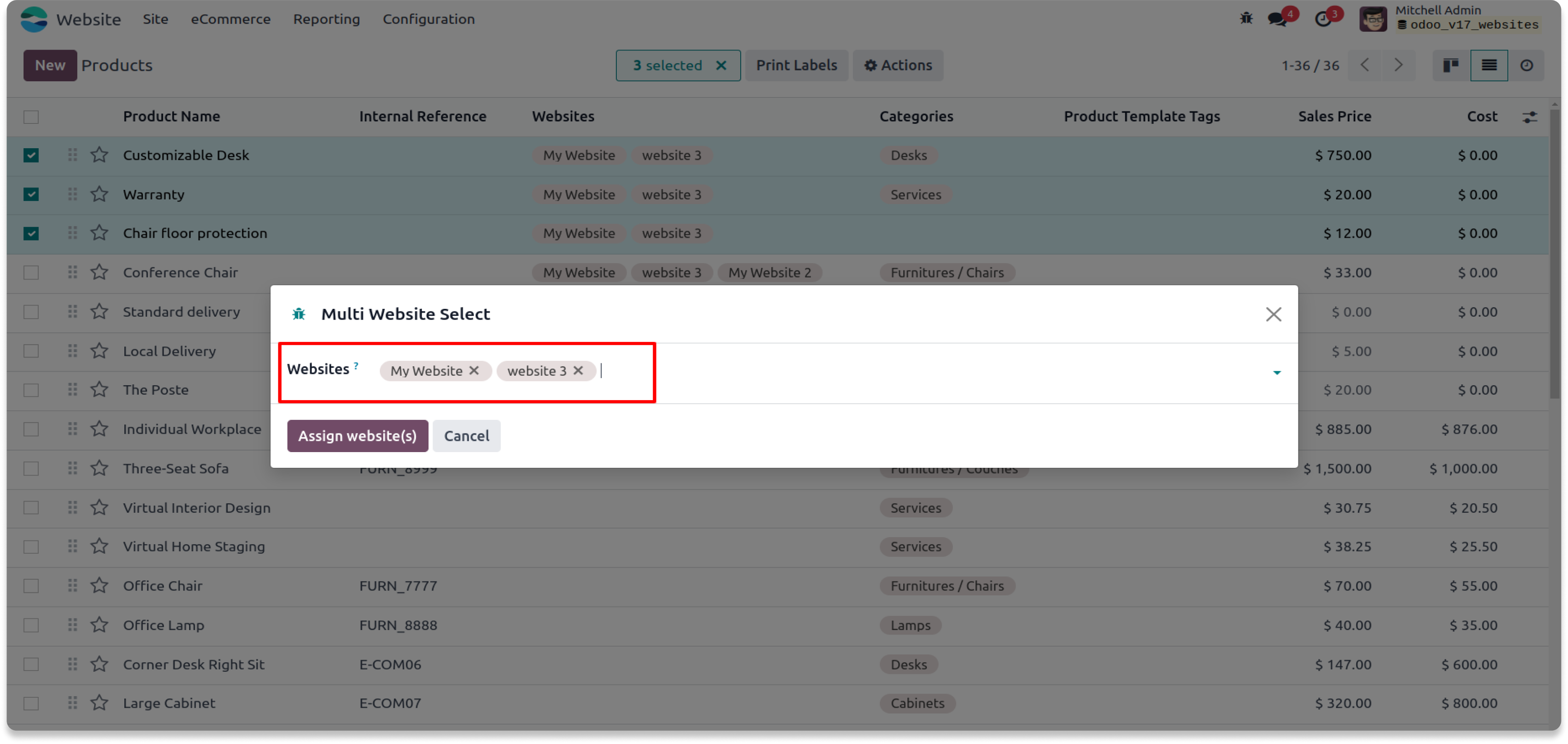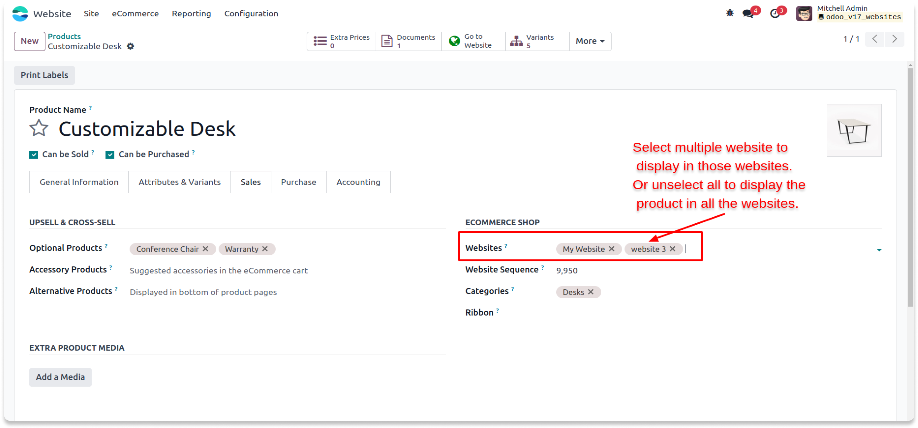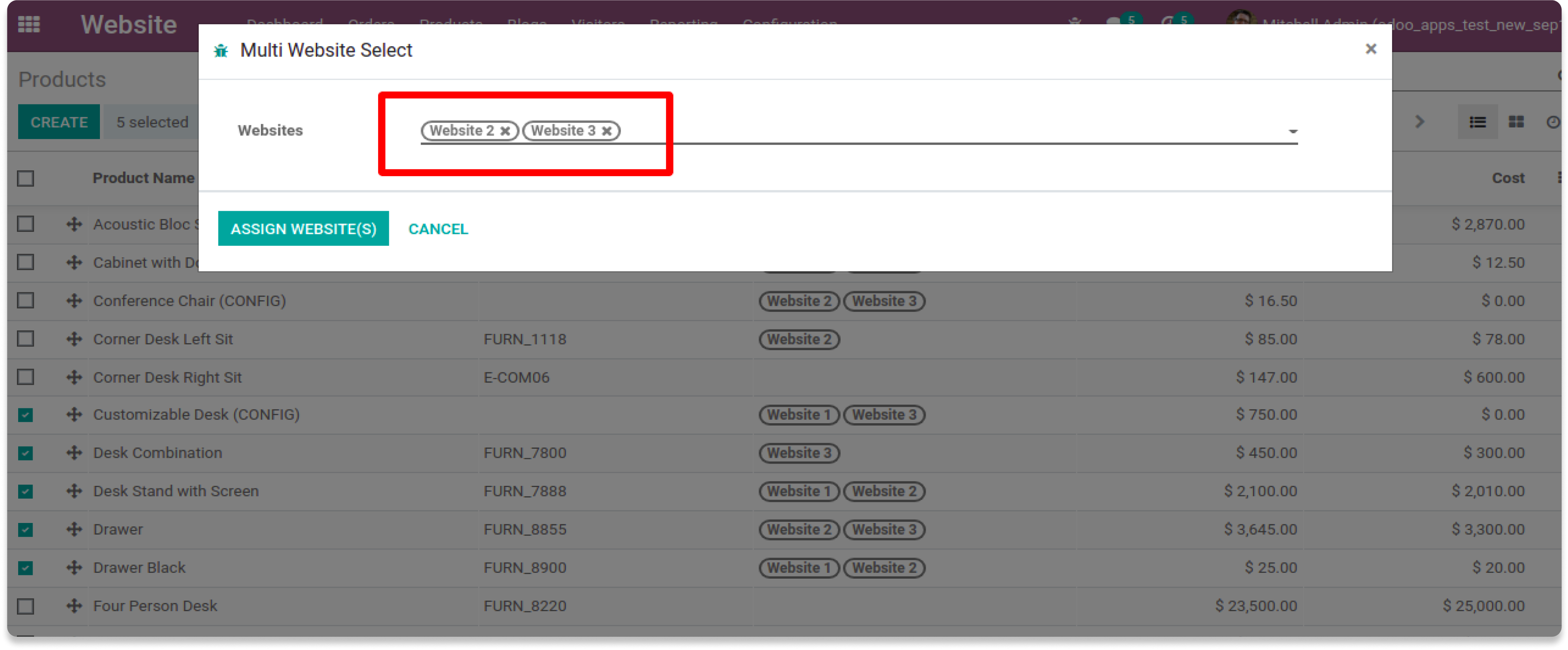 Odoo's core multi website feature only allows you to select one website per product or none, but it doesn't allow you to select 2 or more websites per product or category. If you are using odoo multi website feature and want to add a product on multiple websites, or restrict a prodcut in some websites, then this is a hands on module for you.