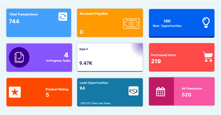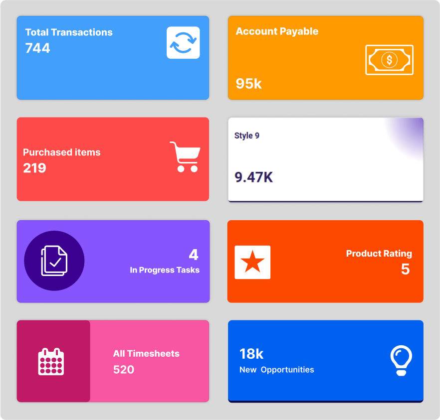 9 attractive statistic item designs And the option to set action on statistic item click.