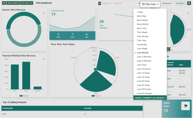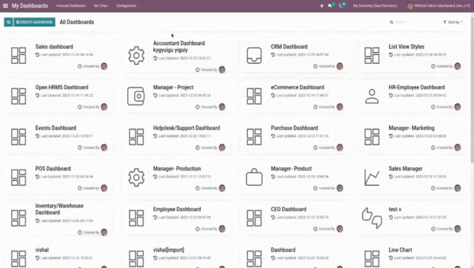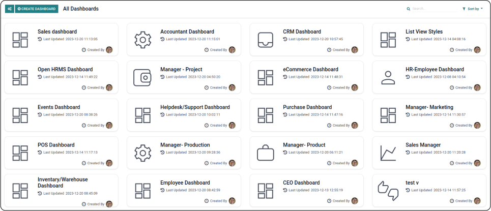 Get paid predefined main odoo modules(sales, POS, HR, employee, helpdesk, website, etc) dashboard templates.