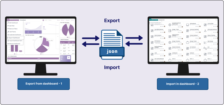Need to migrate or collaborate? Importing is just as seamless, ensuring your dashboards are portable and adaptable to your evolving business needs. Effortlessly transport your customized dashboards by exporting them in JSON format, making backup and sharing a breeze.