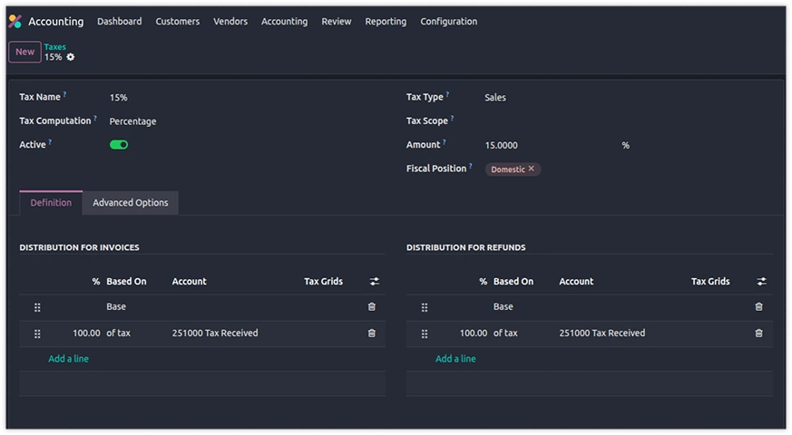 Odoo 19 allows rule-based configuration and automatically applies the correct tax per transaction.