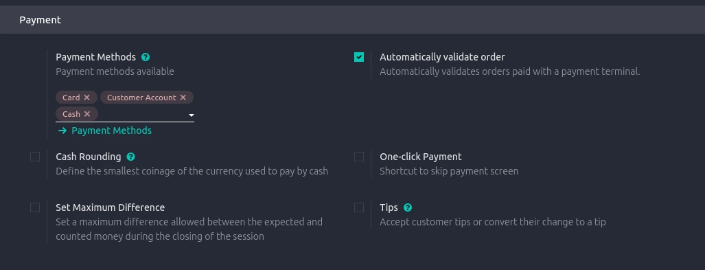 3. Assign payment methods to specific POS configurations