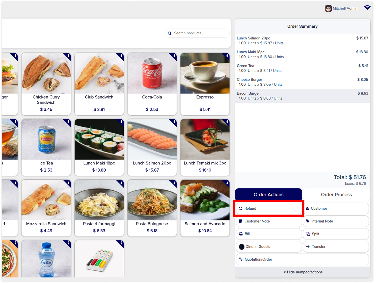 The order action section provides a number of actions. By creating rules on the action access tab, you can hide actions like a refund, split, merge, reward, order/quotations, etc from any user and employees if they are unimportant to them.